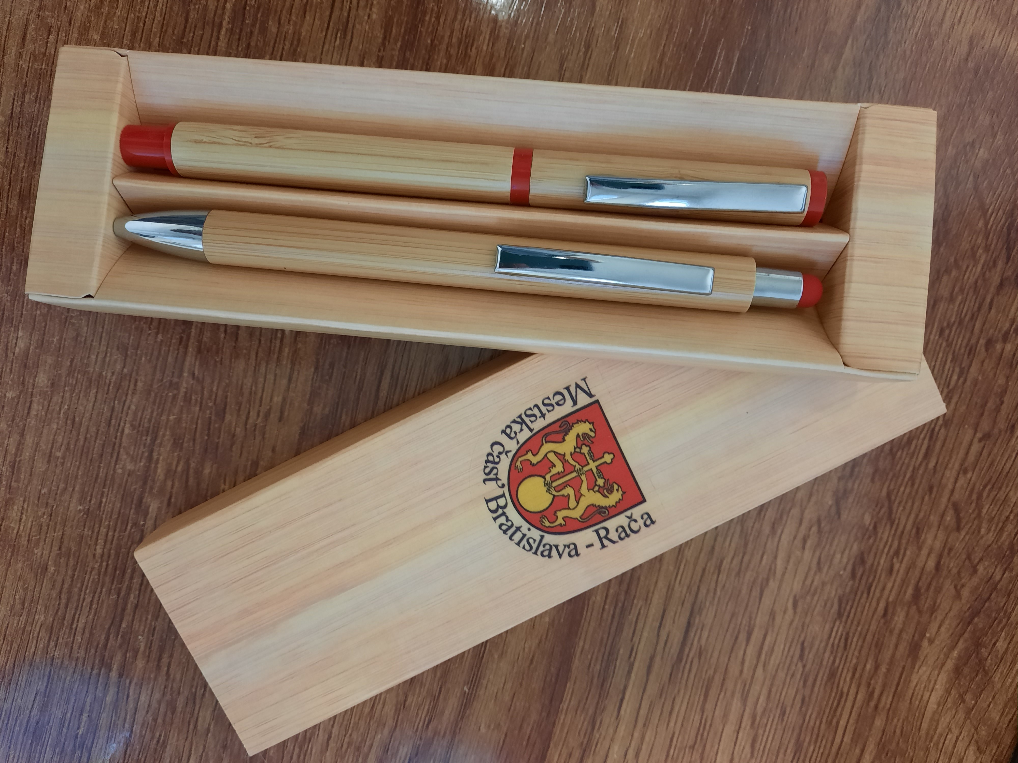 2-dielna sada na víno v darčekovej krabičke s logom Mestskej časti Bratislava-Rača